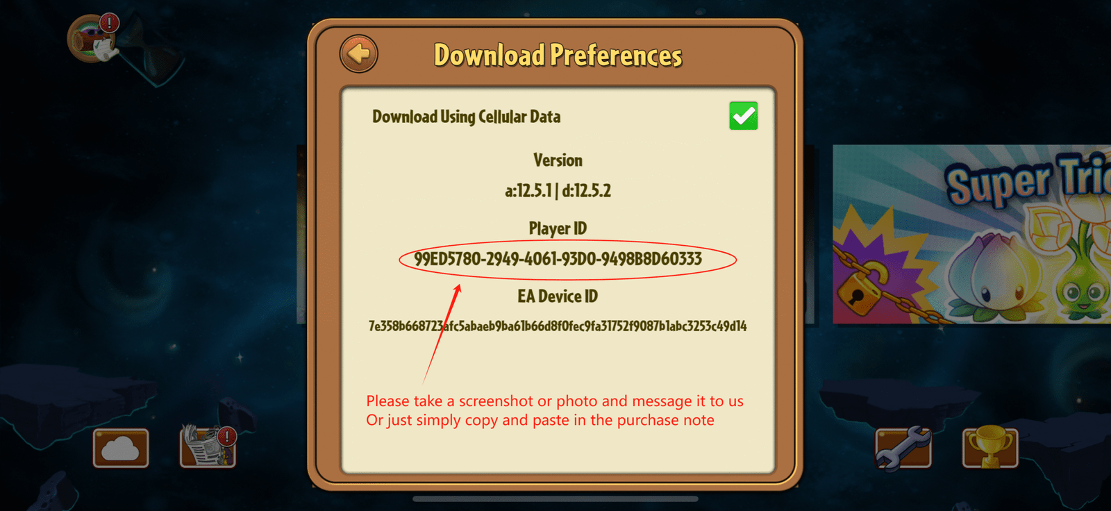 The ONLY thing we need is your Player ID which you can find in your game Setting so we can remotely deliver the save data to your phone.